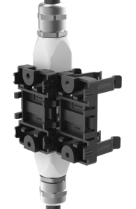 - Isolerende ramme designet til fastgørelse af 21.21 stik, i hus til hus sammenkobling.