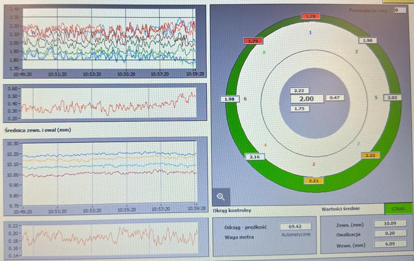 Es werden 8 Messungen innen und 8 Messungen außen vorgenommen, um zu bestimmen, ob es den Anforderungen an den Innendurchmesser entspricht und um auf Ovalität zu prüfen, um sicherzustellen, dass es den Ovalitätsstandards entspricht. Für die Chargen, die wir auf dem gemessenen Rohr haben, speichern wir die Daten in ihrer Datenbank zu Rückverfolgungszwecken. Bei den Spulen wird eine Kugel hindurchgeführt, um auf Verengungen zu prüfen, mit einem nachfolgend angewendeten Druck von 20 bar, um deren Integrität zu bewerten. Dieser Prozess wird für alle Spulen durchgeführt. Es ist entscheidend zu betonen, dass es alle oben genannten Anforderungen für die Wiederverwendbarkeit erfüllen muss.