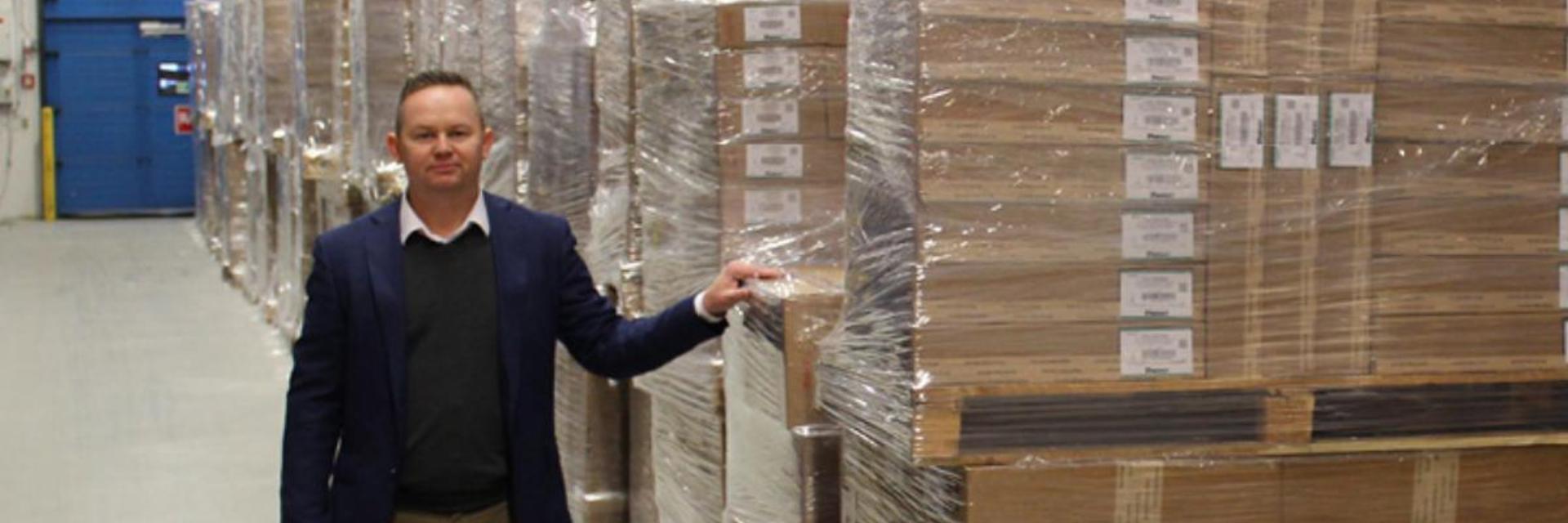 *Steffen Bie Paulsen fra Følsgaard i Norge med en del af de produkter, der blev sendt afsted fra Følsgaards lager i Køge.