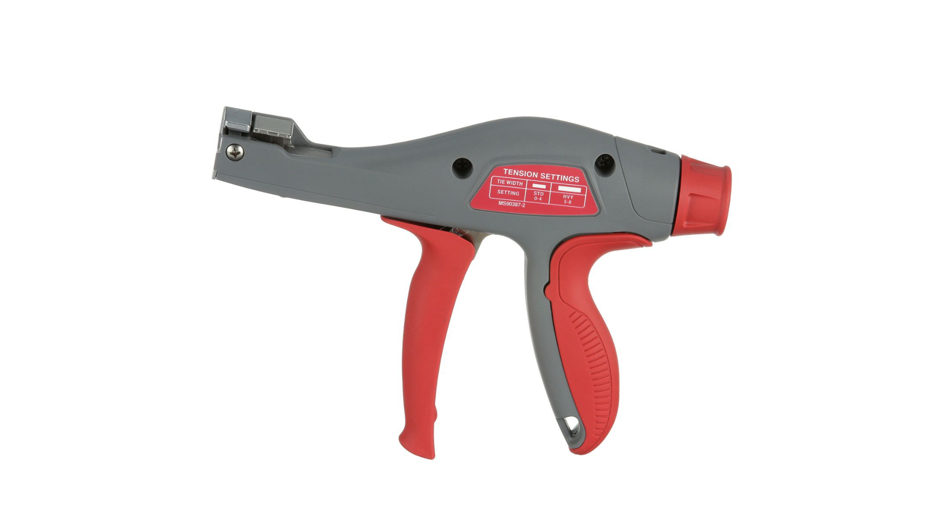 Panduit offers the most preferred hand-operated tools in the industry. The GTH-E Ergonomic Cable Tie Hand Tool is easy to operate and has tool-controlled tension that provides a flush cut-off and speeds up installation to lower installed cost. Promotes worker safety, reduces downtime, and increases productivity. For Standard, Heavy-Standard, Light-Heavy, and Heavy Cross Section Cable Ties. Red trigger handle and selector knob with dark gray plastic housing. Weight, 11.9 ounces (337.1 grams).